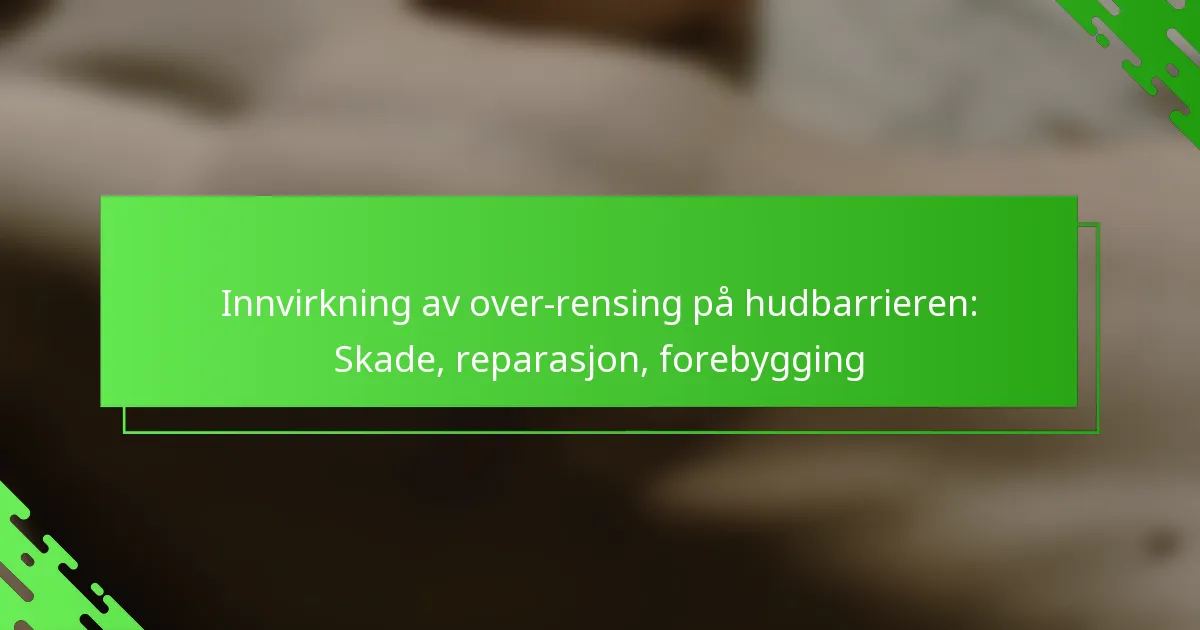 Hudbarrieren er avgjørende for å beskytte mot miljømessige angrep og bevare fuktighet, og spiller en nøkkelrolle i den generelle hudhelsen. Overrensing kan alvorlig forstyrre denne barrieren, noe som fører til tørrhet, irritasjon og økt mottakelighet for infeksjoner. For å opprettholde en sunn hudbarriere er det viktig å adoptere en balansert rense-rutine tilpasset din hudtype og bruke passende produkter.