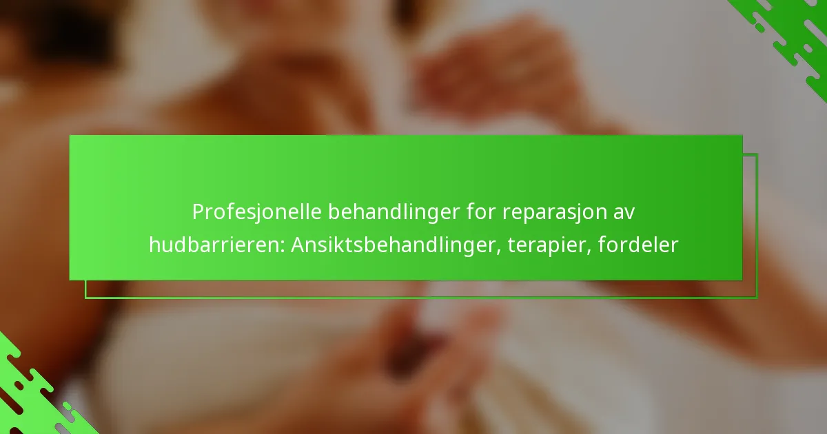 Profesjonelle behandlinger for reparasjon av hudbarrieren inkluderer ulike ansiktsbehandlinger og terapier designet for å gjenopprette og styrke hudens beskyttende lag. Disse behandlingene kan adressere problemer som tørrhet, sensitivitet og irritasjon, og gir både umiddelbare og langsiktige fordeler.
